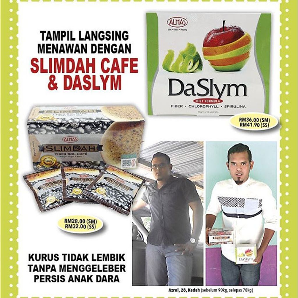 Bagi penggemar kopi, ALMAS mengeluarkan produk Slimdah Fiber Sol Café yang sedap, enak, berkhasiat dan sangat berkesan. Ia mengenyangkan dan mampu memberi tenaga berterusan dan menjadikan anda sentiasa sihat. Di samping menurunkan berat badan tanpa kesan sampingan, mengempiskan perut, membakar lemak dan mengurangkan kolesterol. Malah, ia tidak memerlukan pembuangan toksin yang kerap dan memenatkan. Anda harus mencubanya dan rasailah sendiri akan kehebatan Slimdah Café
