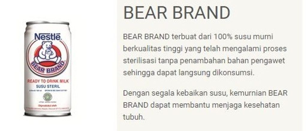 Kenapa susu beruang mengandung banyak kandungan seperti diatas, dan apa bedanya dengan susu lainnya. Memang susu beruang disini secara logo tampilannya adalah beruang, walaupun iklannya ada naga yang terbang. Perlu diketahui bahwa susu Bear Brand ini adalah susu sapi. Yang menjadi pembeda adalah susu sapi disini melewati proses sterilisasi yang murni.